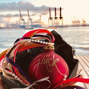Sie ist (nicht nur) Hafenmalerin, Kalligrafin (Kalligräfin?!), hat Ihr Popup-Atelier nach wie vor am Alten Wall 12 (direkt neben dem Rathaus), sondern sie kalligrafiert z.B. auch Christbaumkugeln für Euch!